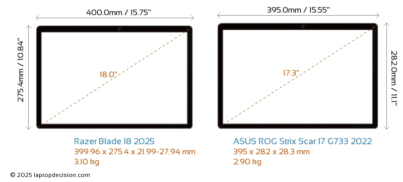 HDMI両方の Blade 18 2025 と ROG Strix Scar 17 G733 2022 は、外部モニターに接続するための HDMI ポート (1x HDMI 2.1) を備えています。