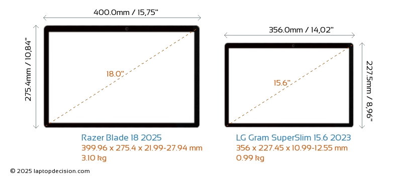 Wifi Blade 18 2025 はより高度な Wi-Fi 規格 v7 を備え、 Gram SuperSlim 15.6 2023 (v6E) と比べて、より高速で信頼性の高いワイヤレス接続を提供します。