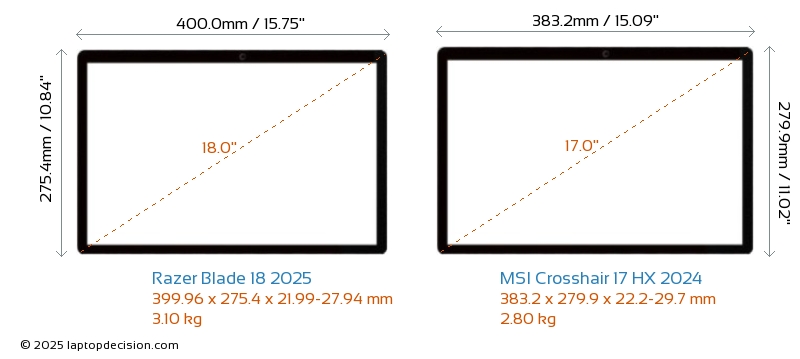 HDMI両方の Blade 18 2025 と Crosshair 17 HX 2024 は、外部モニターに接続するための HDMI ポート (1x HDMI 2.1) を備えています。