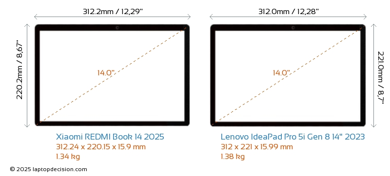 Wifi IdeaPad Pro 5i Gen 8 14" 2023 はより高度な Wi-Fi 規格 v6E を備え、 REDMI Book 14 2025 (v6) と比べて、より高速で信頼性の高いワイヤレス接続を提供します。