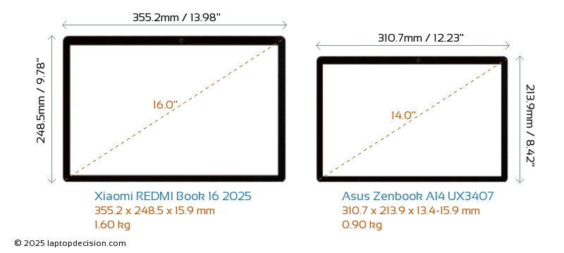 HDMI両方の REDMI Book 16 2025 と Zenbook A14 UX3407 は、外部モニターに接続するための HDMI ポート (1x HDMI 2.1) を備えています。