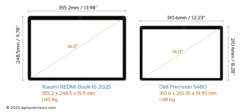 HDMI REDMI Book 16 2025 は、外部モニターに接続するための HDMI ポート (1x HDMI 2.1) を備えています。 Precision 5480 には HDMI ポートがありません。