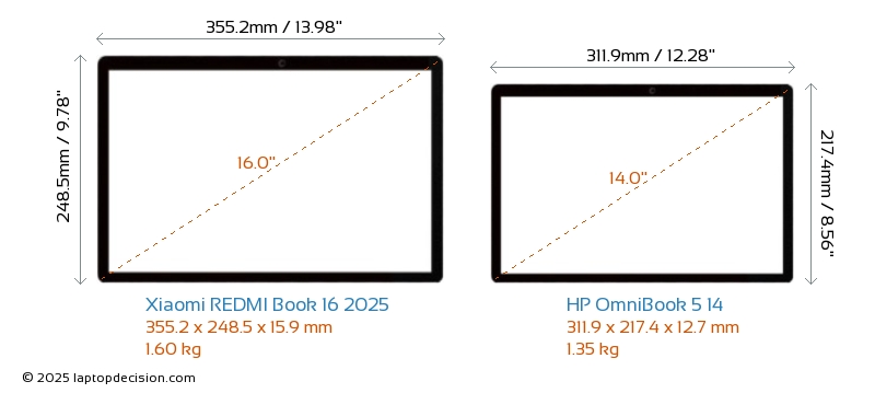 HDMI REDMI Book 16 2025 は、外部モニターに接続するための HDMI ポート (1x HDMI 2.1) を備えています。 OmniBook 5 14 には HDMI ポートがありません。