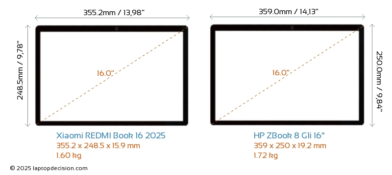 HDMI両方の REDMI Book 16 2025 と ZBook 8 G1i 16" は、外部モニターに接続するための HDMI ポート (1x HDMI 2.1) を備えています。