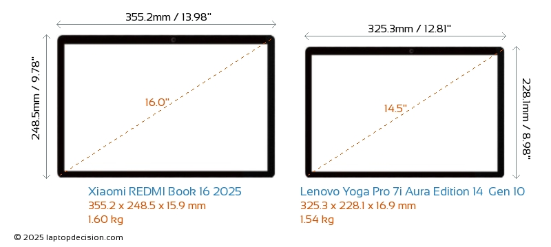 HDMI両方の REDMI Book 16 2025 と Yoga Pro 7i Aura Edition 14 Gen 10 は、外部モニターに接続するための HDMI ポート (1x HDMI 2.1) を備えています。