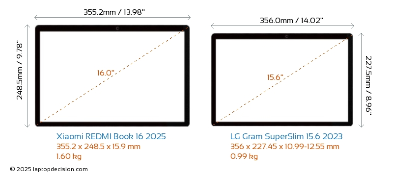 HDMI REDMI Book 16 2025 は、外部モニターに接続するための HDMI ポート (1x HDMI 2.1) を備えています。 Gram SuperSlim 15.6 2023 には HDMI ポートがありません。