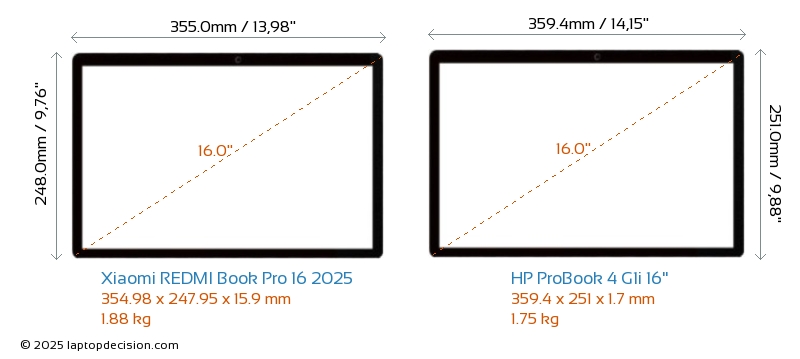 HDMI両方の REDMI Book Pro 16 2025 と ProBook 4 G1i 16" は、外部モニターに接続するための HDMI ポート (1x HDMI 2.1) を備えています。