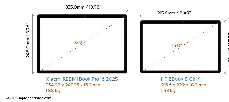 HDMI両方の REDMI Book Pro 16 2025 と ZBook 8 G1i 14" は、外部モニターに接続するための HDMI ポート (1x HDMI 2.1) を備えています。