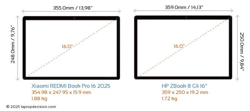 HDMI両方の REDMI Book Pro 16 2025 と ZBook 8 G1i 16" は、外部モニターに接続するための HDMI ポート (1x HDMI 2.1) を備えています。
