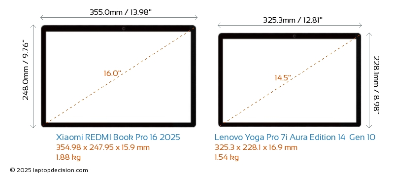 HDMI両方の REDMI Book Pro 16 2025 と Yoga Pro 7i Aura Edition 14 Gen 10 は、外部モニターに接続するための HDMI ポート (1x HDMI 2.1) を備えています。