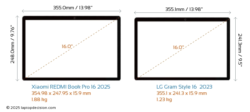 Wifi Gram Style 16 2023 はより高度な Wi-Fi 規格 v6E を備え、 REDMI Book Pro 16 2025 (v6) と比べて、より高速で信頼性の高いワイヤレス接続を提供します。